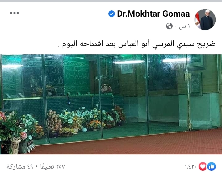 نشر الدكتور محمد مختار جمعة وزير الأوقاف الصور الأولى من افتتاح ضريح سيدي المرسي أبو العباس بمحافظة الإسكندرية.