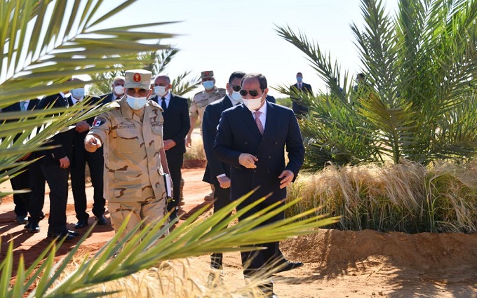 كما تفقد الرئيس عبد الفتاح السيسي مؤخرا مشروعات استصلاح الأراضي الزراعية ومزارع القمح والنخيل بمنطقة توشكى بجنوب الوادي.