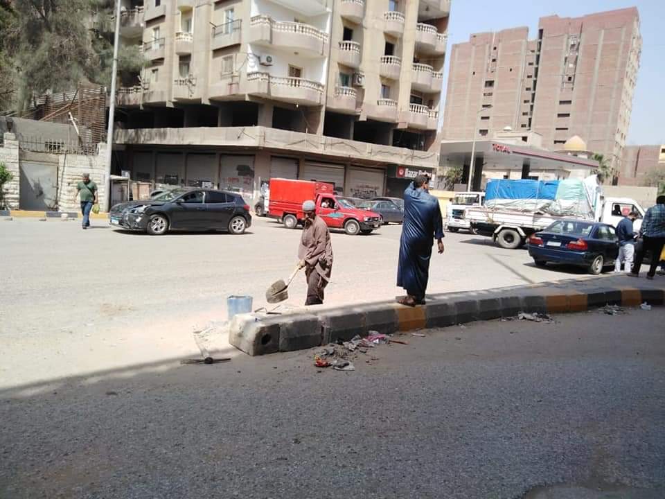 تحت اشراف اللواء حسن موافي رئيس حي الهرم واحمد امام نائب رئيس الحي ومحمد عبد الودود رئيس قطاع منشأة البكاري وحمدي رضوان مدير صيانة الطرق بحي الهرم ومجموعة العمل المرافقة.