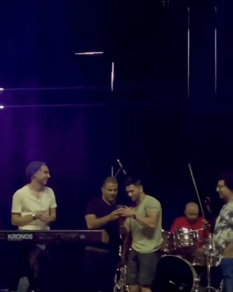وقام رامي جمال بلفتة إنسانية ولبي طلب معجبة من ذوي الاحتياجات الخاصة واحتفال معها بحفل خطوبتها علي المسرح.