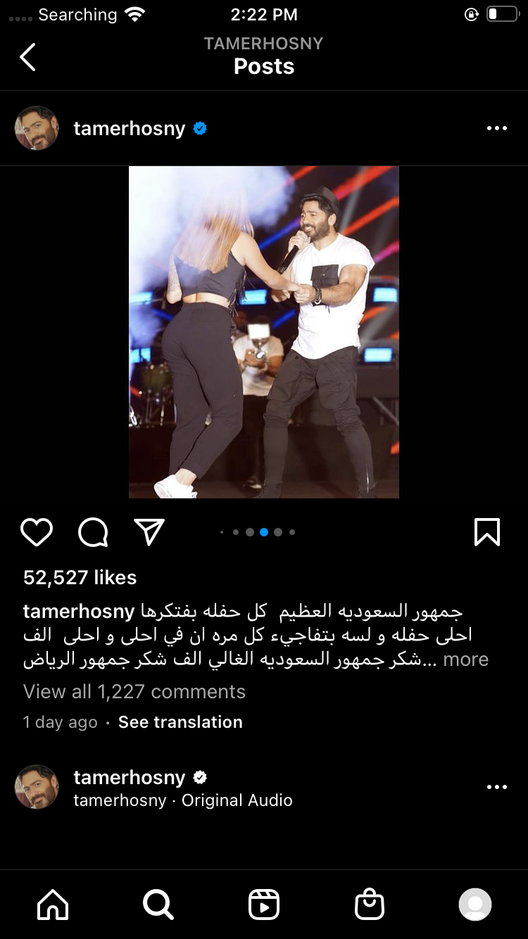 وقد تداول نشطاء مواقع التواصل الاجتماعي مقطع فيديو من حفل عمرو دياب الأخير في السعودية وظهر في “الفيديو “ أحد الجمهور وهو يقتحم المسرح علي عمرو دياب لإلتقاط بعض الصور التذكارية وطلب ”دياب” من الأمن ألا يمنعه من الصعود علي المسرح.
