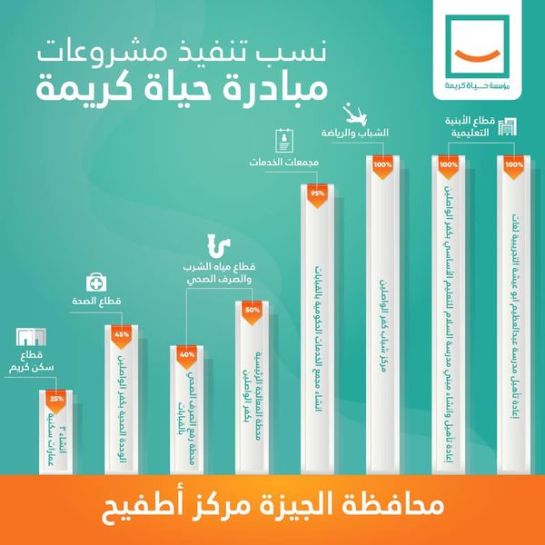 - على مدى شهور من العمل المتواصل، قامت مؤسسة حياة كريمة بالعديد من المشروعات في مركز أطفيح بمحافظة الجيزة.