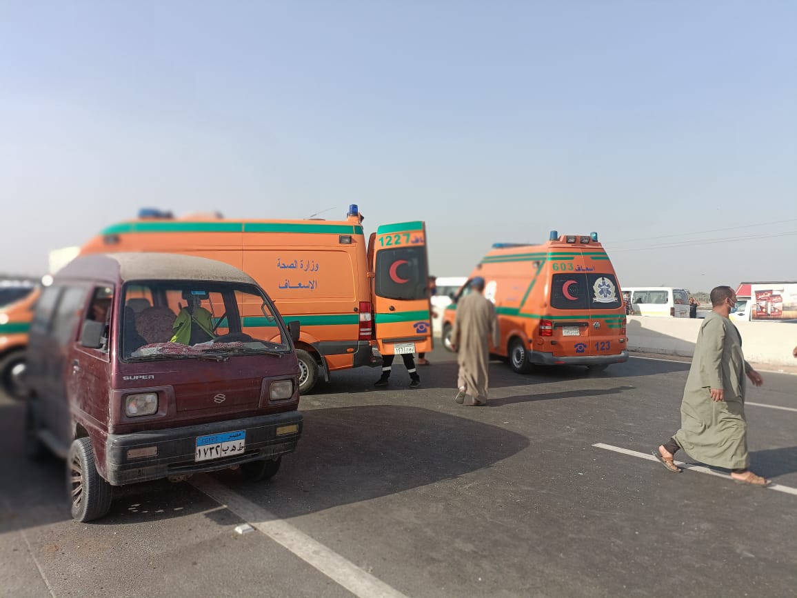 مصرع شخصين وإصابة 8 آخرين في حادث مروع بطريق الإسماعيلية السويس | صور