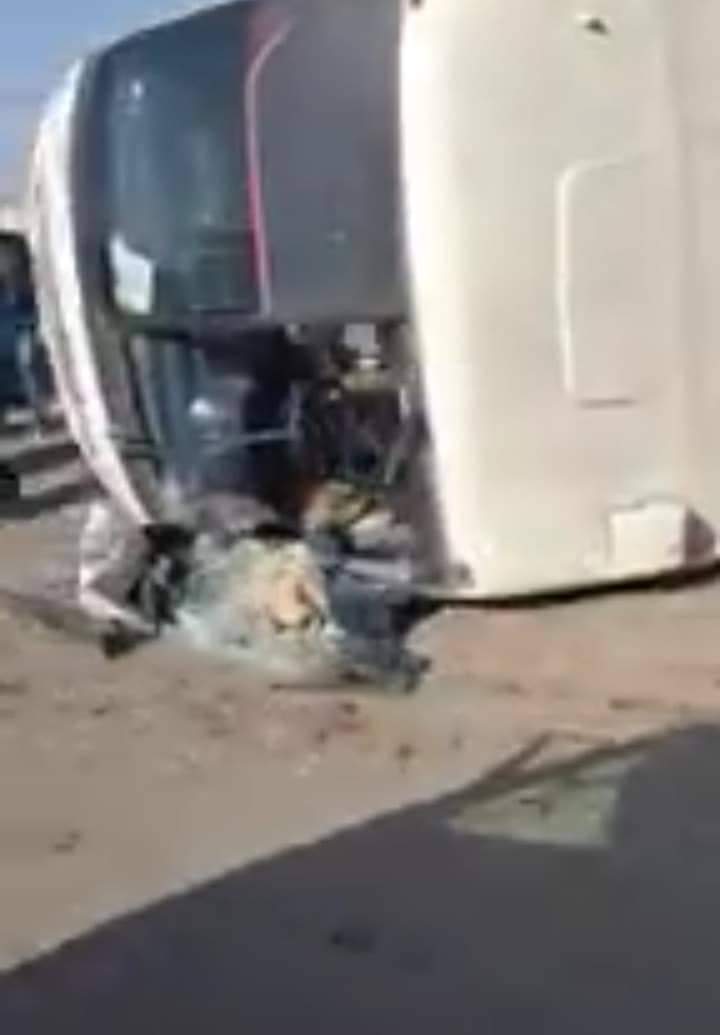 تمكنت الأجهزة الأمنية من إزالة أثار الحادث الذي تسبب فى تعطل الحركة المرورية إثر انقلاب الأتوبيس وتم تسيير الحركة المرورية على الجانبين بصورة طبيعية.