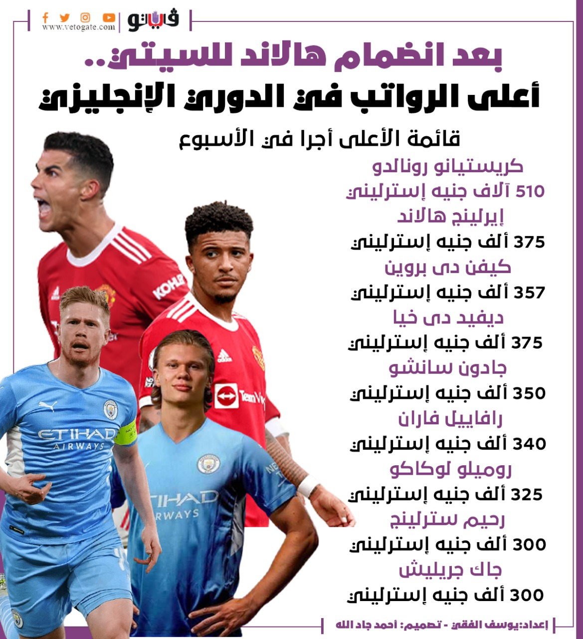 بعد انضمام هالاند للسيتي.. أعلى الرواتب في الدوري الإنجليزي | إنفوجراف الأربعاء 11/مايو/2022 - 02:57 م 5/11/2022 2:57:28 PM يوسف الفقي شارك طباعة 18 حجم الخط شارك طباعة هالاند الدوري الانجليزي كرستيانو رونالدو الإعلى أجرا في الدوري الإنجليزي محمد صلاح