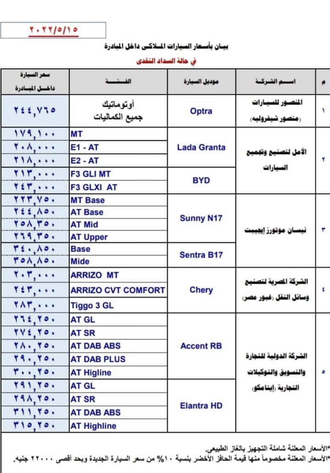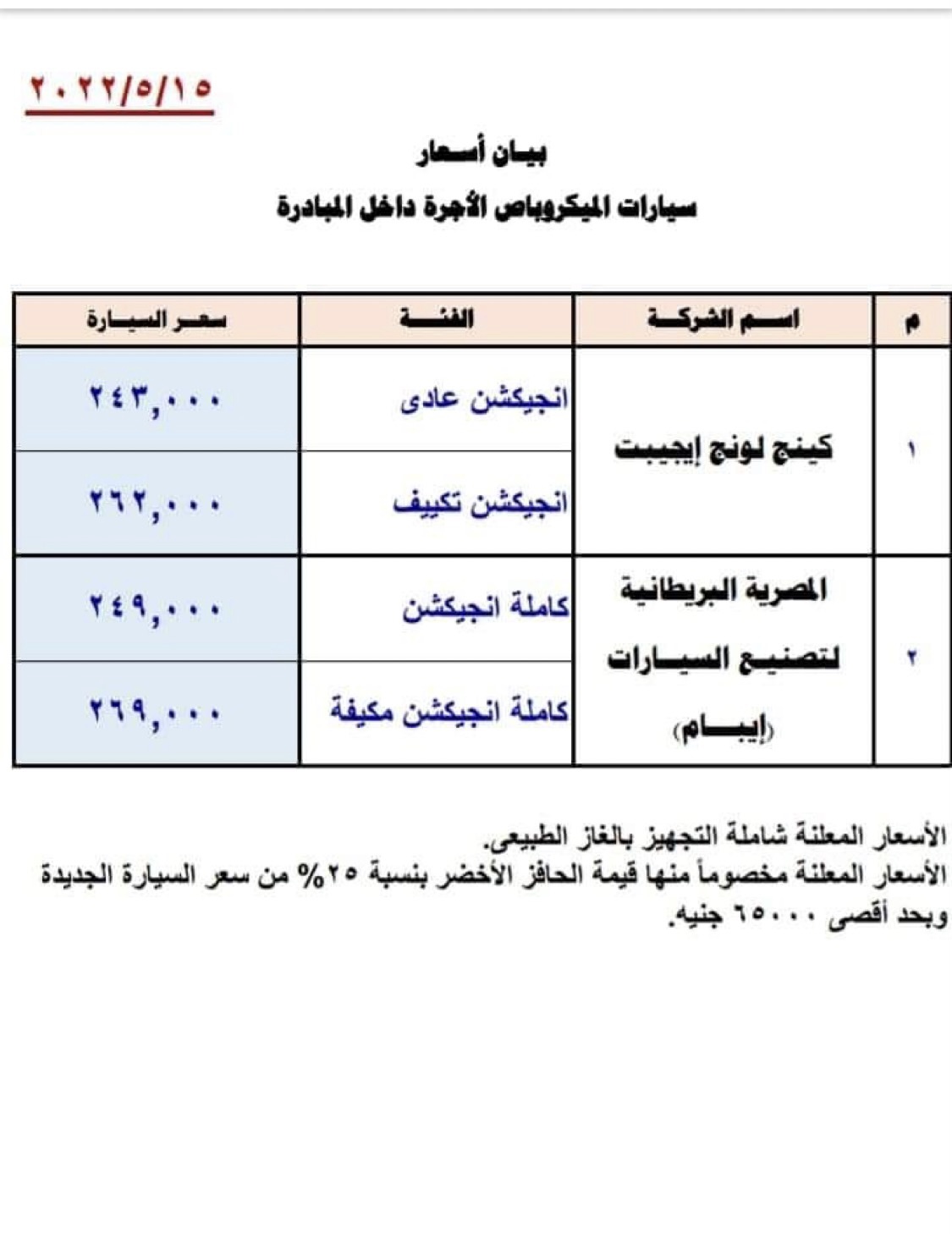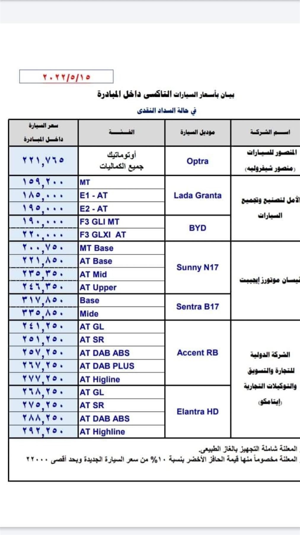 ويستعرض التقرير التالي اسعار سيارات مبادرة الإحلال وهي كالتالي: