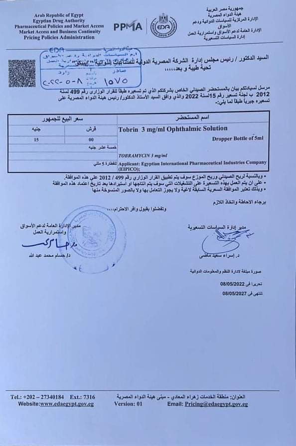 لعلاج إصابات العين وتم تسعيرها بـ15 جنيها.
