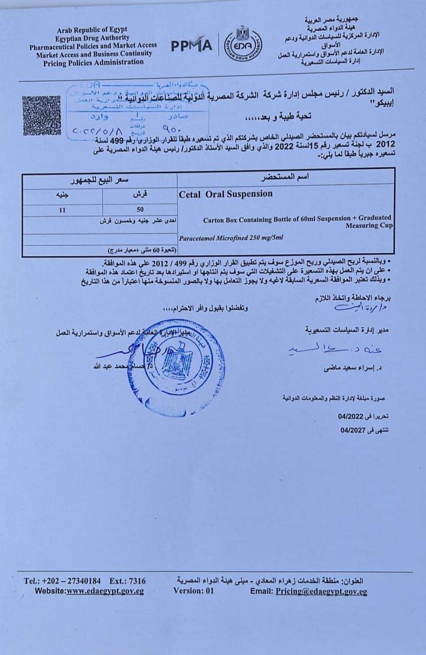 نقط دواء خافض للحرارة للرضع يزيد سعره الي 11.50 جنيها.