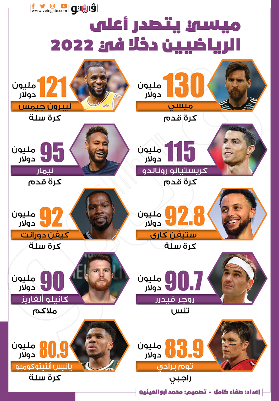 ميسي يتصدر أعلى الرياضيين دخلا في 2022|انفوجراف الخميس 12/مايو/2022 - 05:49 م 5/12/2022 5:49:49 PM ميسي صفاء كامل شارك طباعة 18 حجم الخط شارك طباعة قائمة أعلى الرياضيين دخلا فى العالم ميسي ليونيل ميسي فوربس مجلة فوربس الاقتصادية