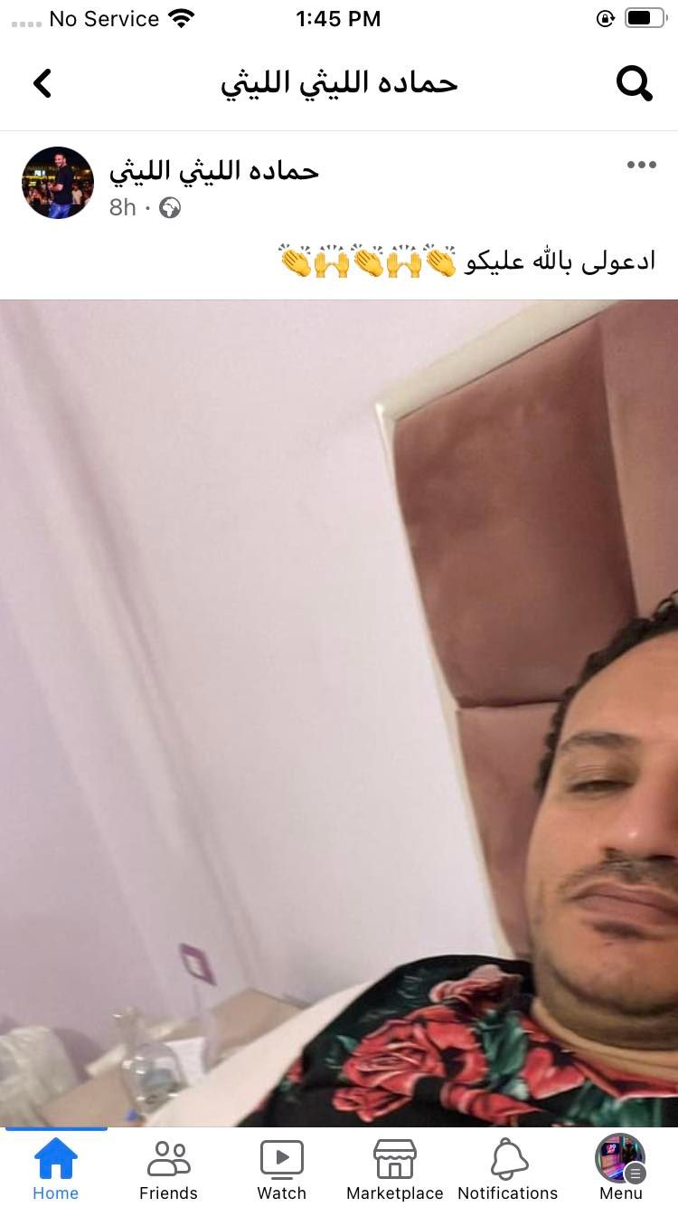 ونشر "حمادة" صورة وهو على "السرير" قائلا:" أدعولي بالله عليكم".