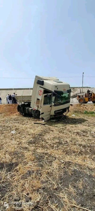إصابة شخصين في سقوط سيارة نقل من أعلى الطريق الإقليمي بالشرقية|صور