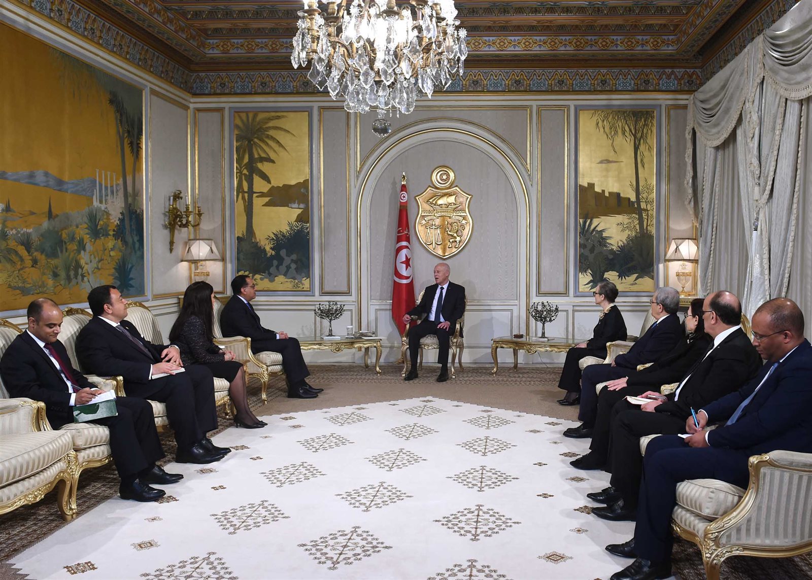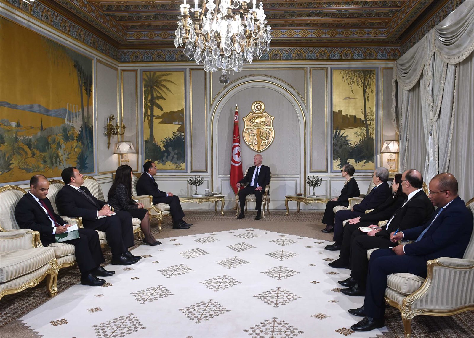 استقبل قيس سعيد، رئيس الجمهورية التونسية، اليوم بقصر قرطاج، الدكتور مصطفى مدبولى، رئيس مجلس الوزراء، بحضور نجلاء بودن، رئيسة الحكومة التونسية.