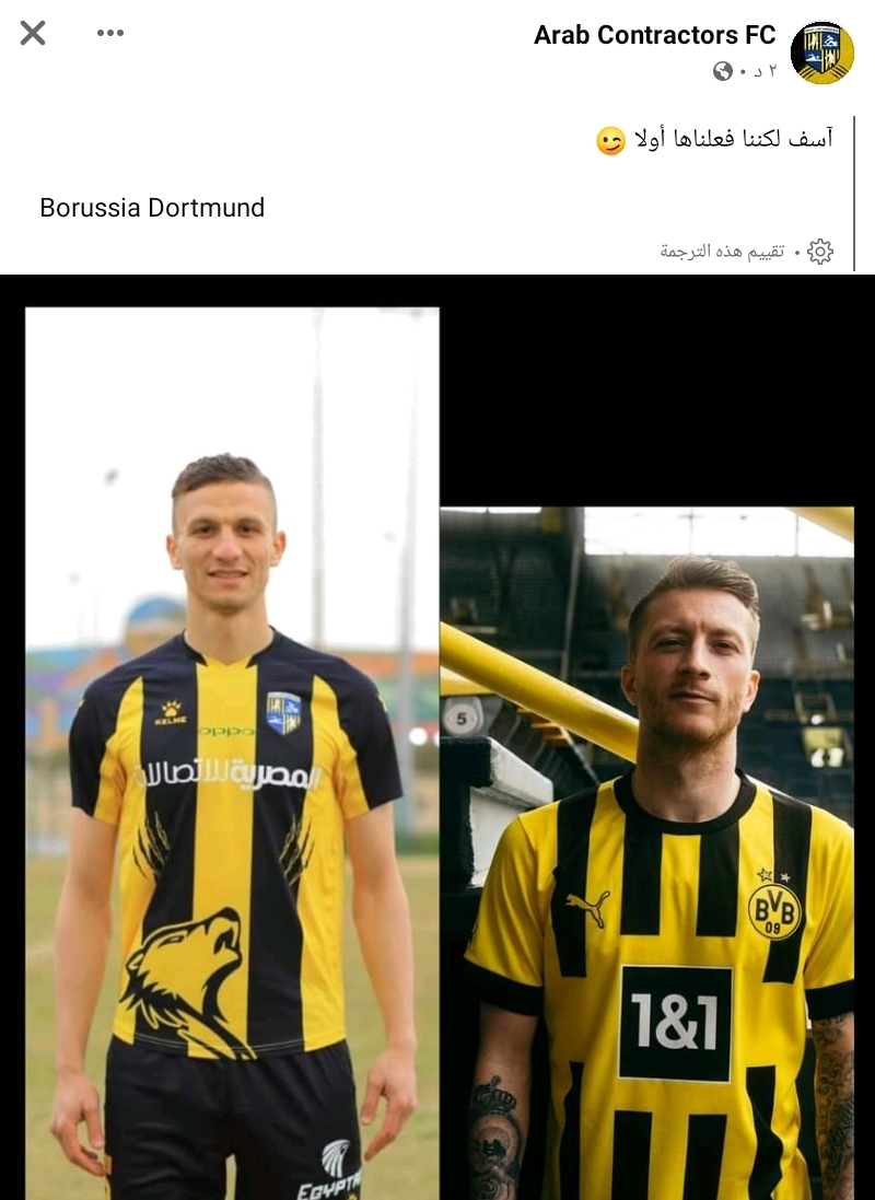 ونشر بوروسيا دورتموند صورًا لقميص الفريق الجديد للموسم المقبل، والذي يتشابه مع قميص فريق المقاولون العرب باللون الأصفر والأسود.