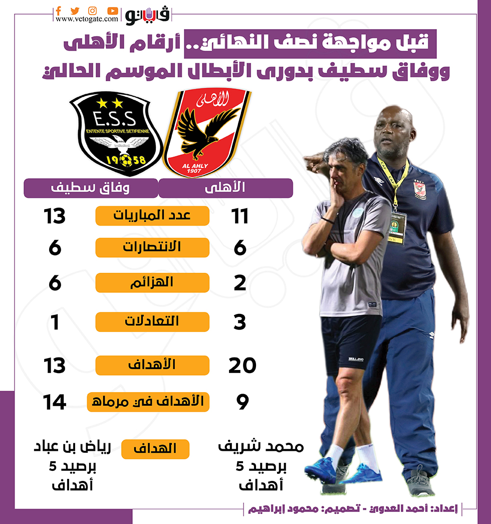 قبل مواجهة نصف النهائي.. أرقام الأهلى ووفاق سطيف بدورى الأبطال الموسم الحالي | إنفوجراف السبت 14/مايو/2022 - 01:27 م 5/14/2022 1:27:37 PM الأهلى أمام وفاق سطيف أحمد العدوي شارك طباعة 18 حجم الخط شارك طباعة وفاق سطيف دوري أبطال أفريقيا اخبار الرياضة اخبار الأهلي الأهلي الاهلي اليوم