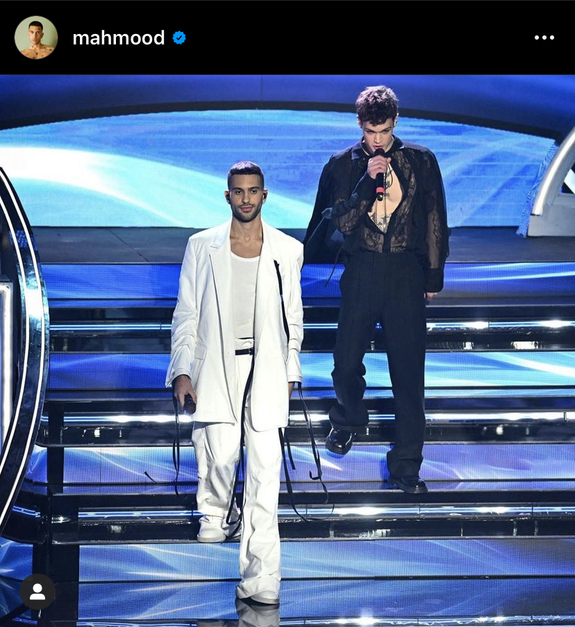 ٣- وبدأ محمود مشاركته بالمهرجانات الغنائية من خلال مهرجان "سان ريمو" عام ٢٠١٦، وفاز فى دورة المهرجان فى عام ٢٠١٩، عن أغنيته"soldi" التى تعد أغنية سيرة ذاتية عن عائلته، وتتضمن جملة باللغة العربية، وشارك فى كتابتها مع اثنين من المؤلفين.