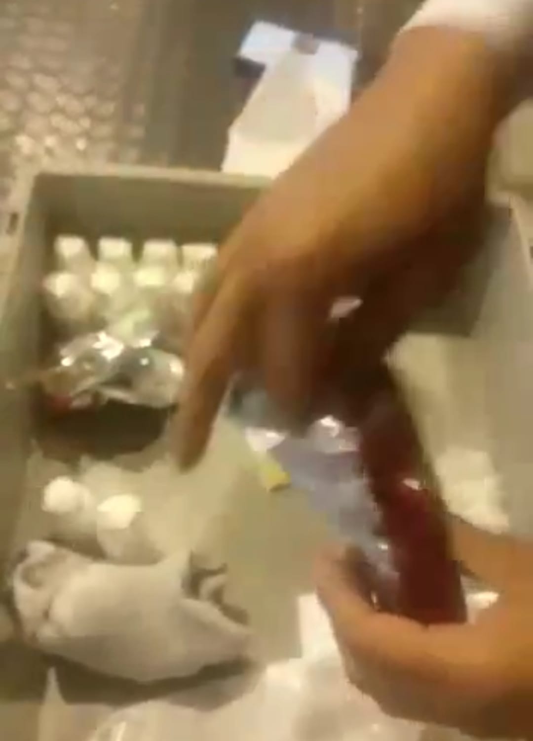 وبتمرير حقائب الراكب على جهاز الفحص بأشعة «X-RAY» بمعرفة محمد صبحي رئيس قسم الفحص، فتلاحظ وجود أشياء تكرارية، وبالعرض على جابر موسى مدير الإدارة، قرر تكليف محمد سيد مراد مدير الحركة، ومينا نادي نصري مأمور الجمرك، لتفتيش حقائب الراكب بحضور محمود الشربيني مأمور الأمن الجمركي، وأحمد عسكر مأمور مكافحة التهرب، فتبين وجود ٢٣ حقنة خاصة بعلاج الأورام وسبيكة ذهبية بوزن ١٠٠ جرام داخل حقائبه.