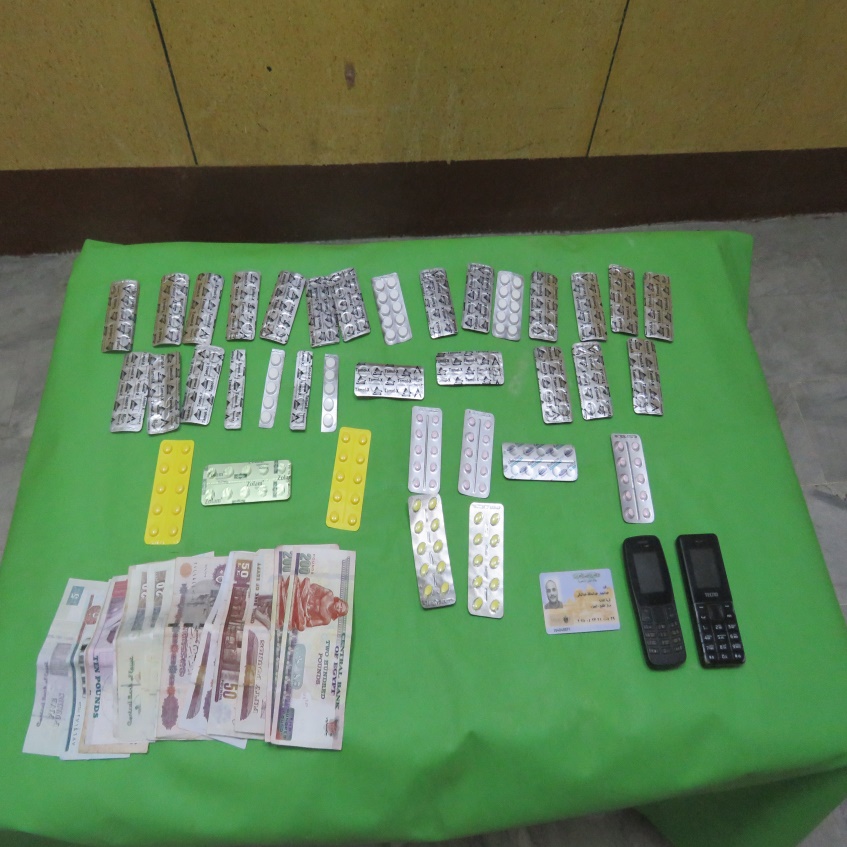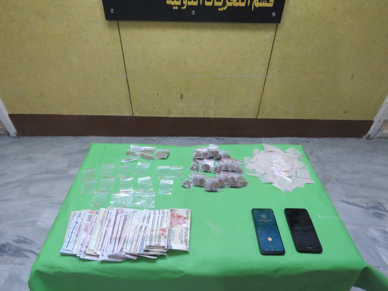 كما تم ضبط (مبلغ مالى – طبنجة صوت – 63 هاتف محمول –3 سيارات – 7 دراجات نارية – 7ميزان – 14 قطعة سلاح أبيض).