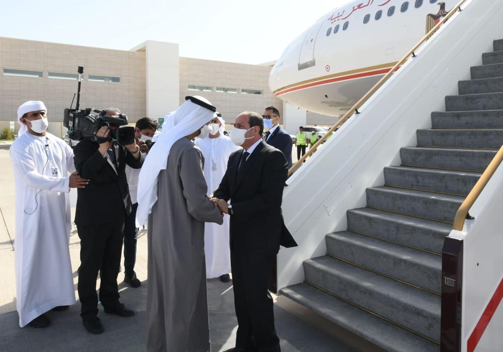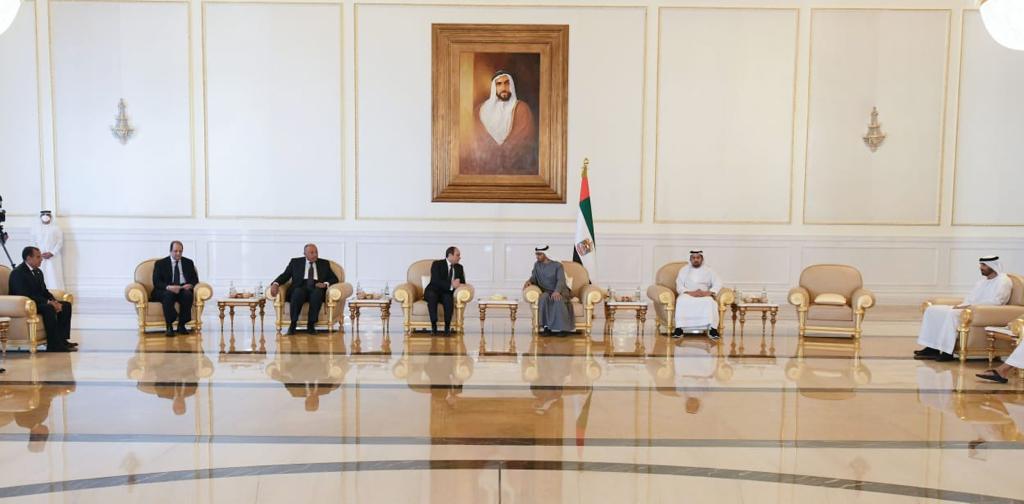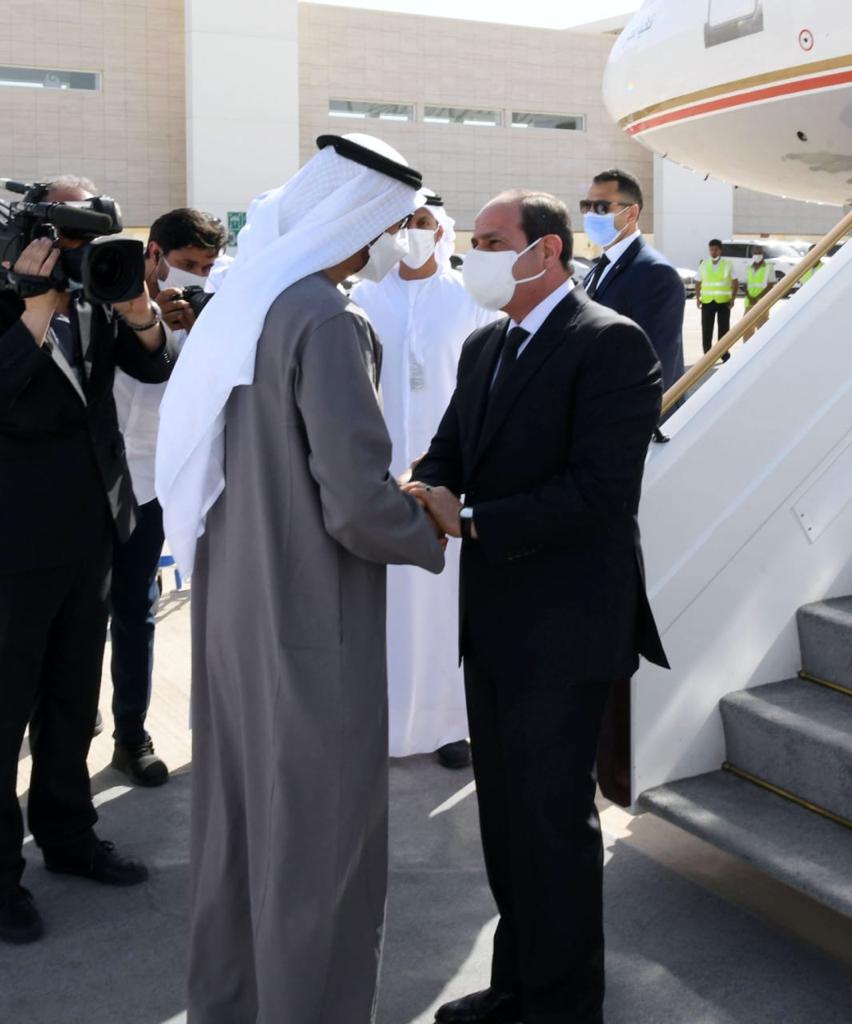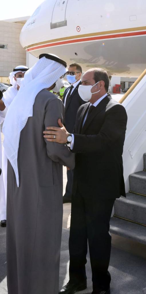 وكان الرئيس عبد الفتاح السيسي قد توجه صباح اليوم الى أبوظبي لتقديم العزاء في وفاة سمو الشيخ خليفة بن زايد آل نهيان رئيس دولة الإمـارات العربيـة المتحدة الشقيقة".