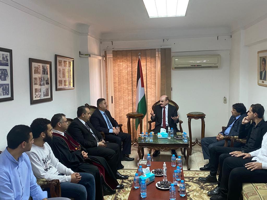 كان في استقبال المعزيين سعاده السفير رأفت بدران القنصل العام لدولة فلسطين بالإسكندرية، وطاقم عمل بعثة القنصلية، حيث قدم العزاء عدد من أعضاء السلك القنصلي بالإسكندرية والشخصيات الرسمية والسياسية والأعتبارية ورجال الدين وأبناء الجالية الفلسطينية والطلاب والأخوة المصريين.
