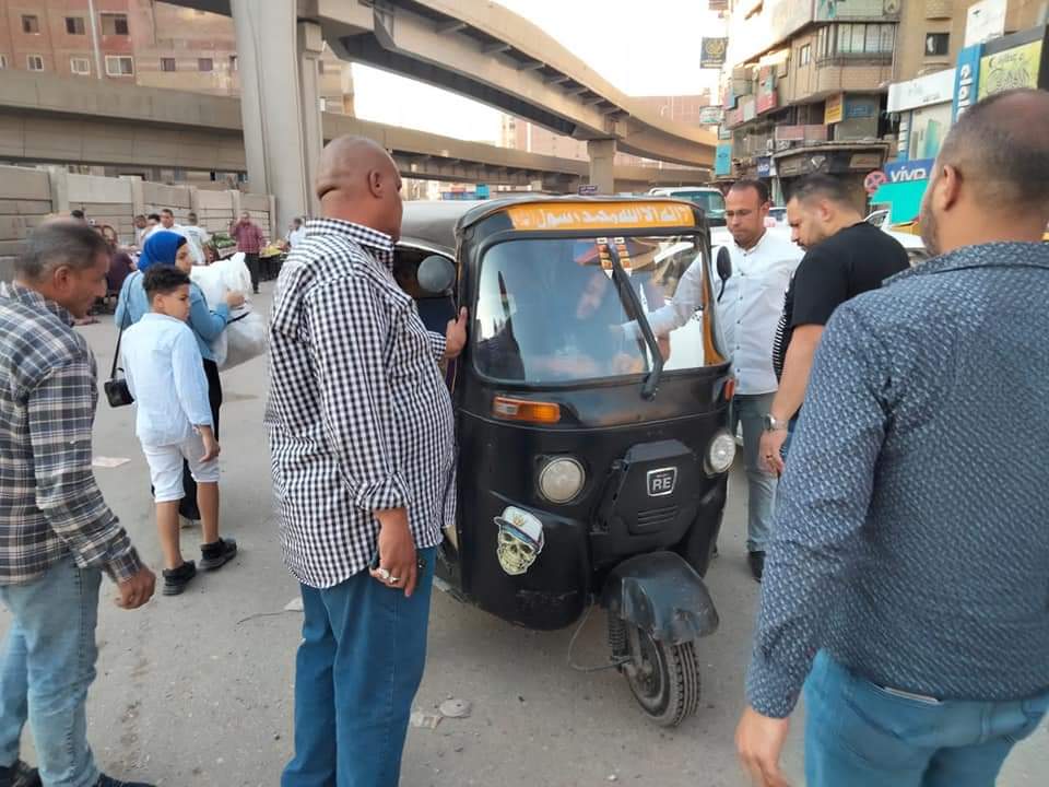 جاء ذلك تنفيذا لقرارات اللواء أحمد راشد محافظ الجيزة بحظر سير التوك توك بشارع محمد أنور السادات.