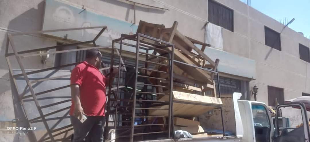 وأسفرت عن رفع كافة الإشغالات من المحلات والمقاهي والكافيهات المخالفين كالآتي: ٣٠٠ كرسي متنوع، ٥٠ قلب وشيشة، كنبة جلد، جهاز وبلايستيشن، ١٠ ميزان متنوع، 5 مدرج خشب، ١٠ إستاند وحديدي، ٢ مرتبة، ٦ ترول، مطبخ ٢ قطعة، ٢ قفص حديد، 5 ثلاجة، تروسيكل، ٨ توكتوك