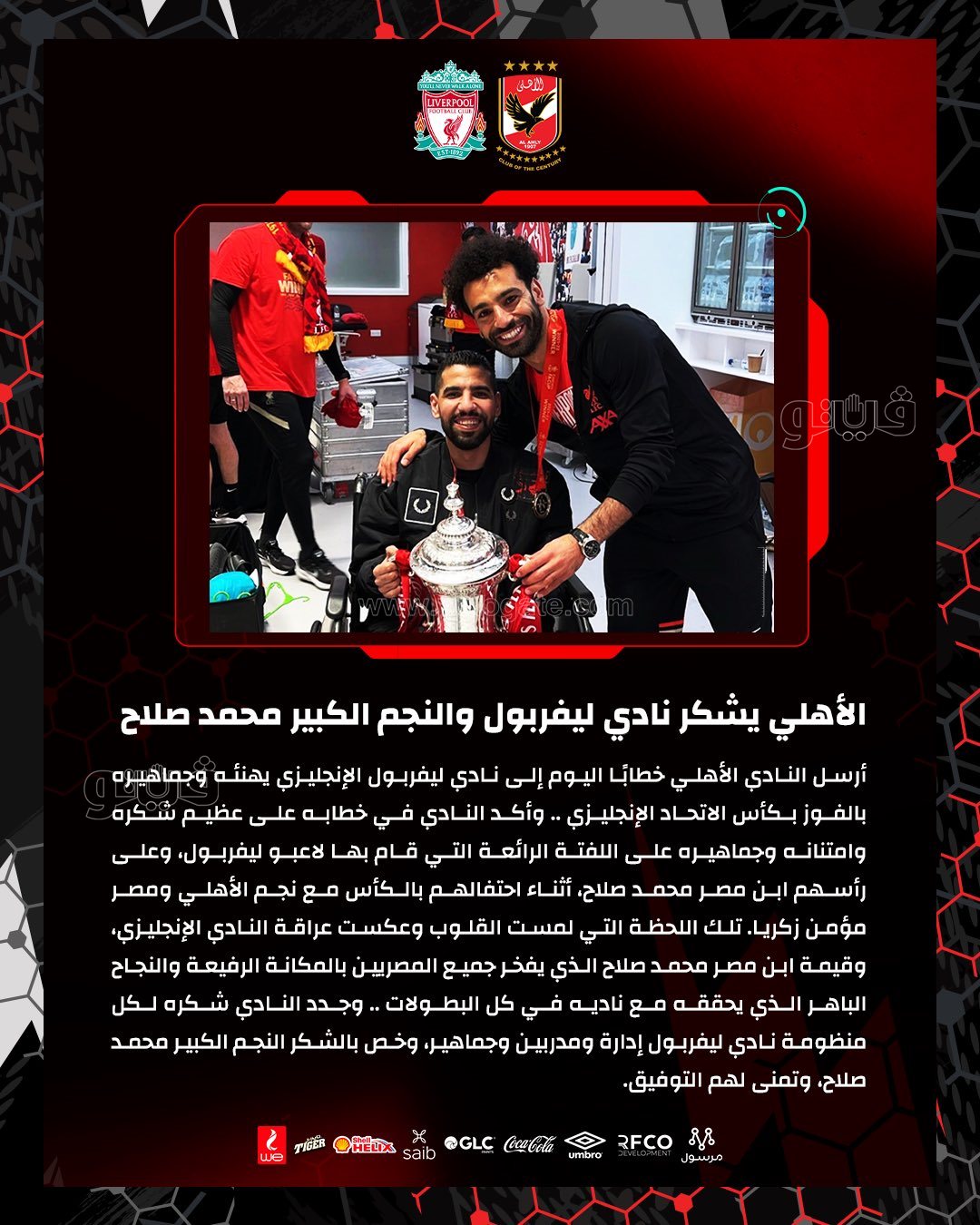الأهلي يشكر ليفربول ومحمد صلاح