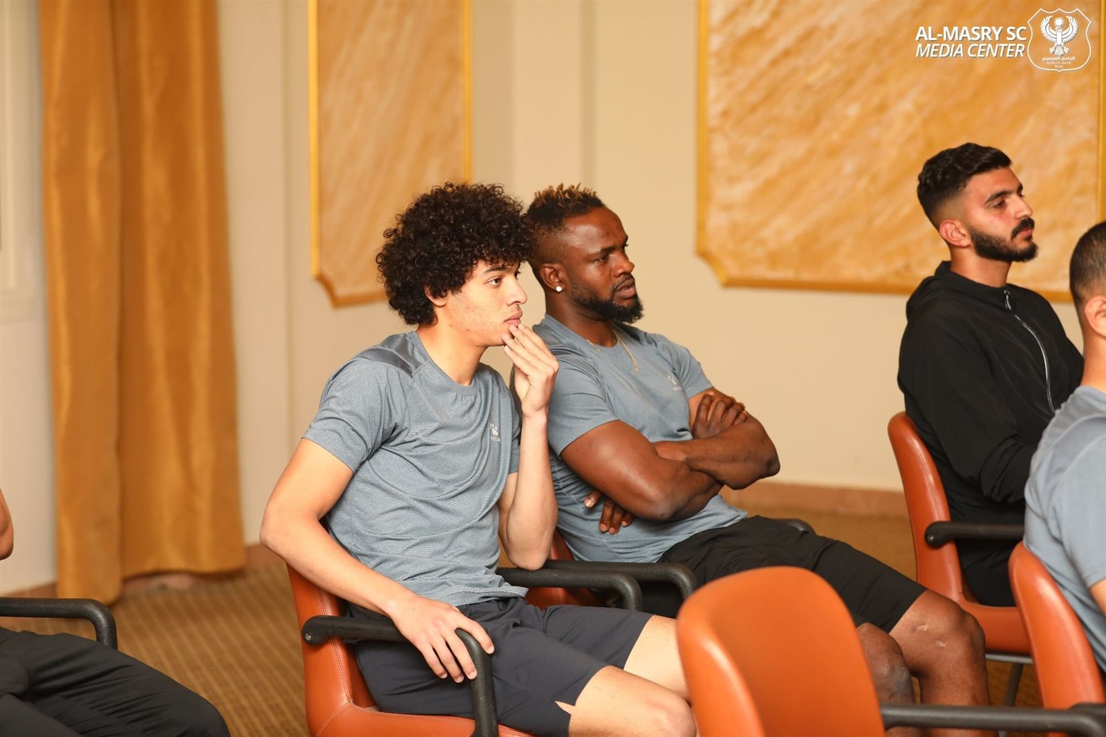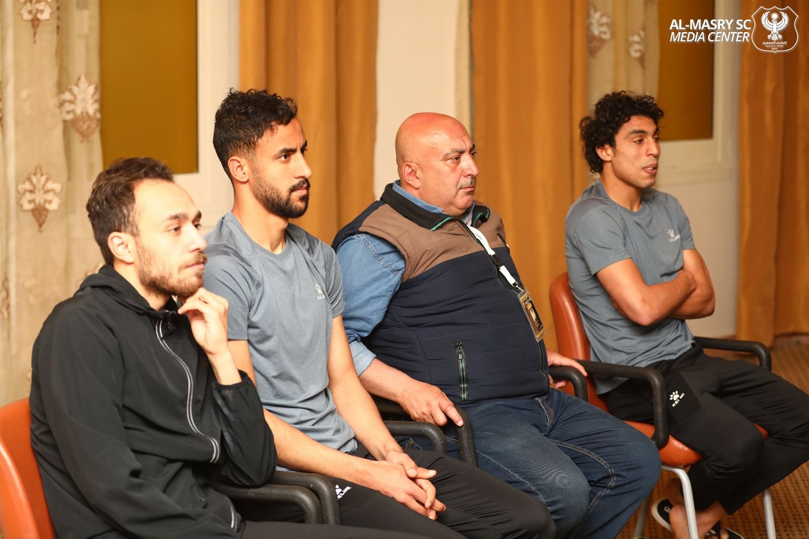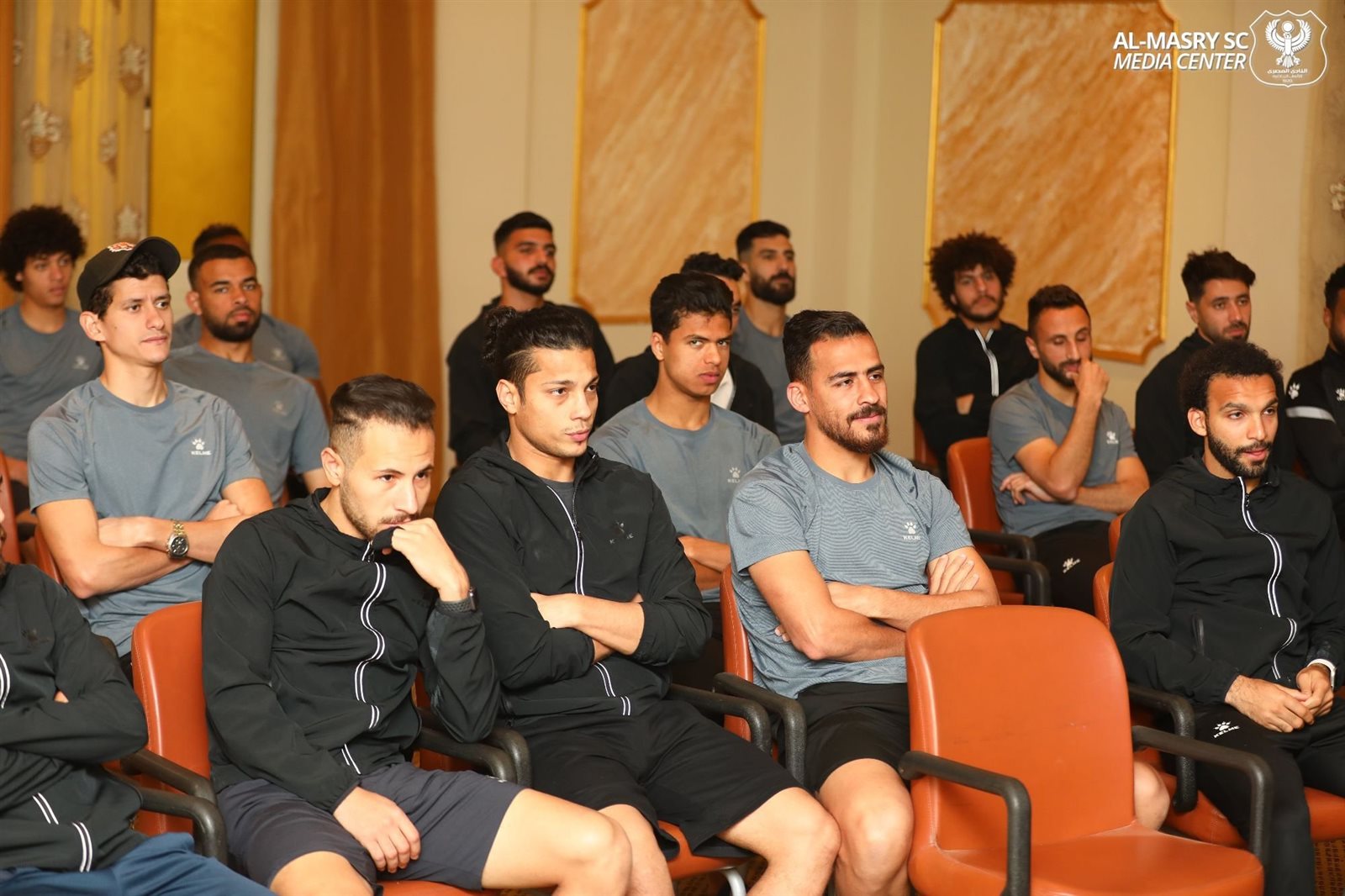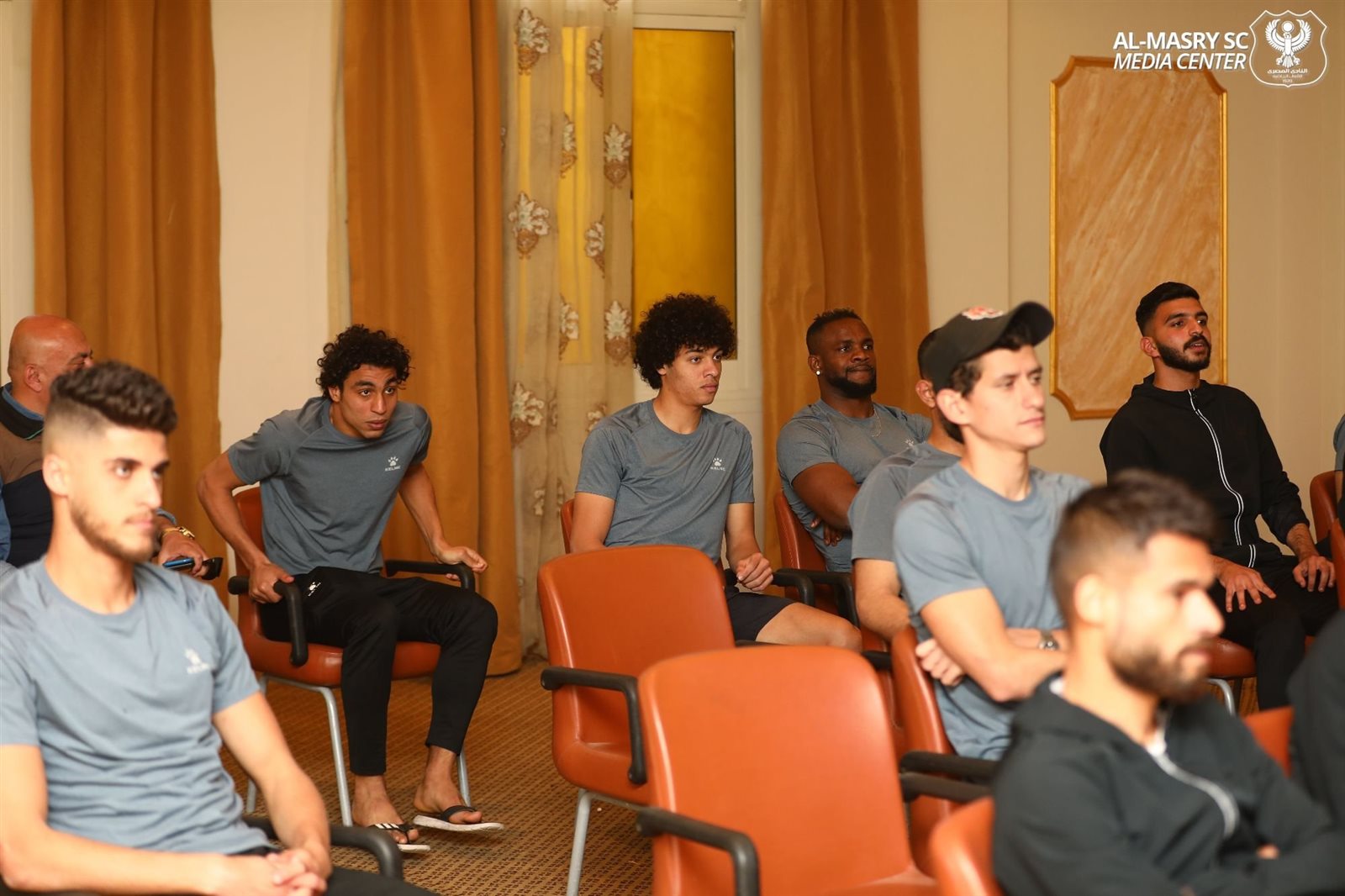 اجتمع سمير حلبية رئيس مجلس إدارة النادي المصري وعاطف مبروك نائب رئيس النادي بلاعبي الفريق الأول للكرة بالنادي وكذا أعضاء الجهاز الفني للفريق بقيادة الكابتن معين الشعباني وكريم ذكري مدير الكرة قبل مباراة الفريق أمام سموحة.