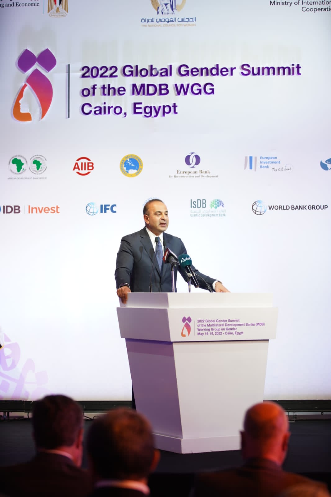 افتتح أحمد كمالي نائب وزيرة التخطيط والتنمية الاقتصادية نيابة عن الدكتورة هالة السعيد وزيرة التخطيط ومحافظ مصر لدى مجموعة البنك الإسلامي للتنمية، الجلسة الافتتاحية للقمة العالمية للنوع الاجتماعي لمجموعة العمل متعددة الأطراف للبنوك التنموية المعنية بقضايا النوع الاجتماعي للعام 2022، والذي يعقدها البنك بالتعاون مع بنك الاستثمار الأوروبي، تحت رعاية وزارة التخطيط والتنمية الاقتصادية، ووزارة التعاون الدولي، والمجلس القومي للمرأة في الفترة من 16 إلى 19 من مايو الجاري بالقاهرة، وذلك بحضور الدكتورة رانيا المشاط وزيرة التعاون الدولي، والدكتورة مايا مرسي رئيس المجلس القومي للمرأة، والدكتور منصور مختار نائب رئيس البنك الإسلامي للتنمية، فايول أمبرواز نائب رئيس بنك الاستثمار الأوروبي.
