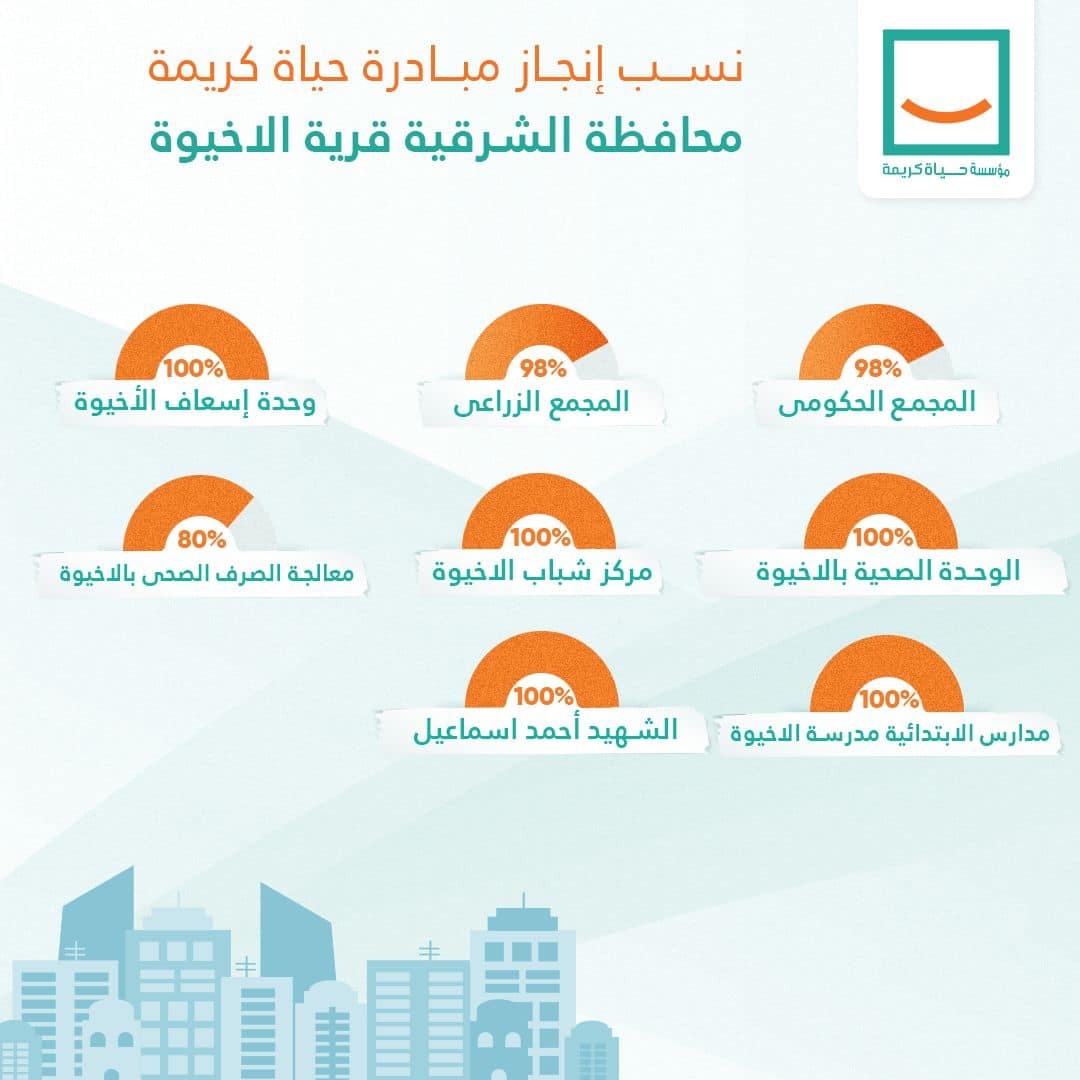 - في قرية الأخيوة تم إنجاز العديد من المشروعات، كالمجمع الحكومي والمجمع الزراعي، والوحدات الصحية إلى جانب القطاع التعليمي ومعالجة الصرف الصحي بالقرية.