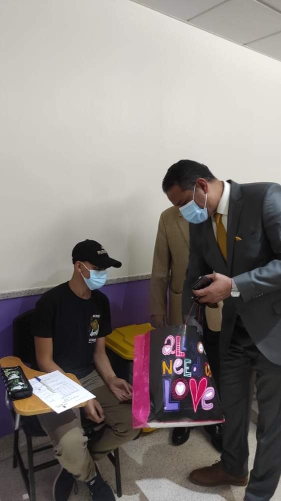 كما قدم شهادات تقدير وميداليات وهدايا للطلاب تَحفيزًا لهم ومتمنيًا التوفيق والنجاح والشفاء العاجل.