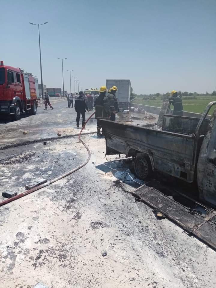 اثار احتراق سيارات علي طريق المنصورة جمصة l صور