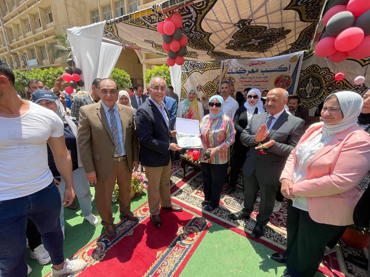 كما رحب رئيس الجامعة بالدكتور محمود عبد العظيم وكيل وزارة الشباب والرياضة بمحاففظة الشرقية ، والدكتور دعاء زكريا المدير العام للشؤون التنفيذية بمديرية التربية والتعليم والتعليم الفنى بمحافظة الشرقية، مقدما الشكرللجميع على كافة الدعم والتعاون المثمر والبناء لرعاية أبنائنا من ذوى الهمم ثم أعطي رئيس الجامعة إشارة البدء الماراثون مشاركًا أبنائنا من ذوى الهمم في جو شديد البهجة والسرور.