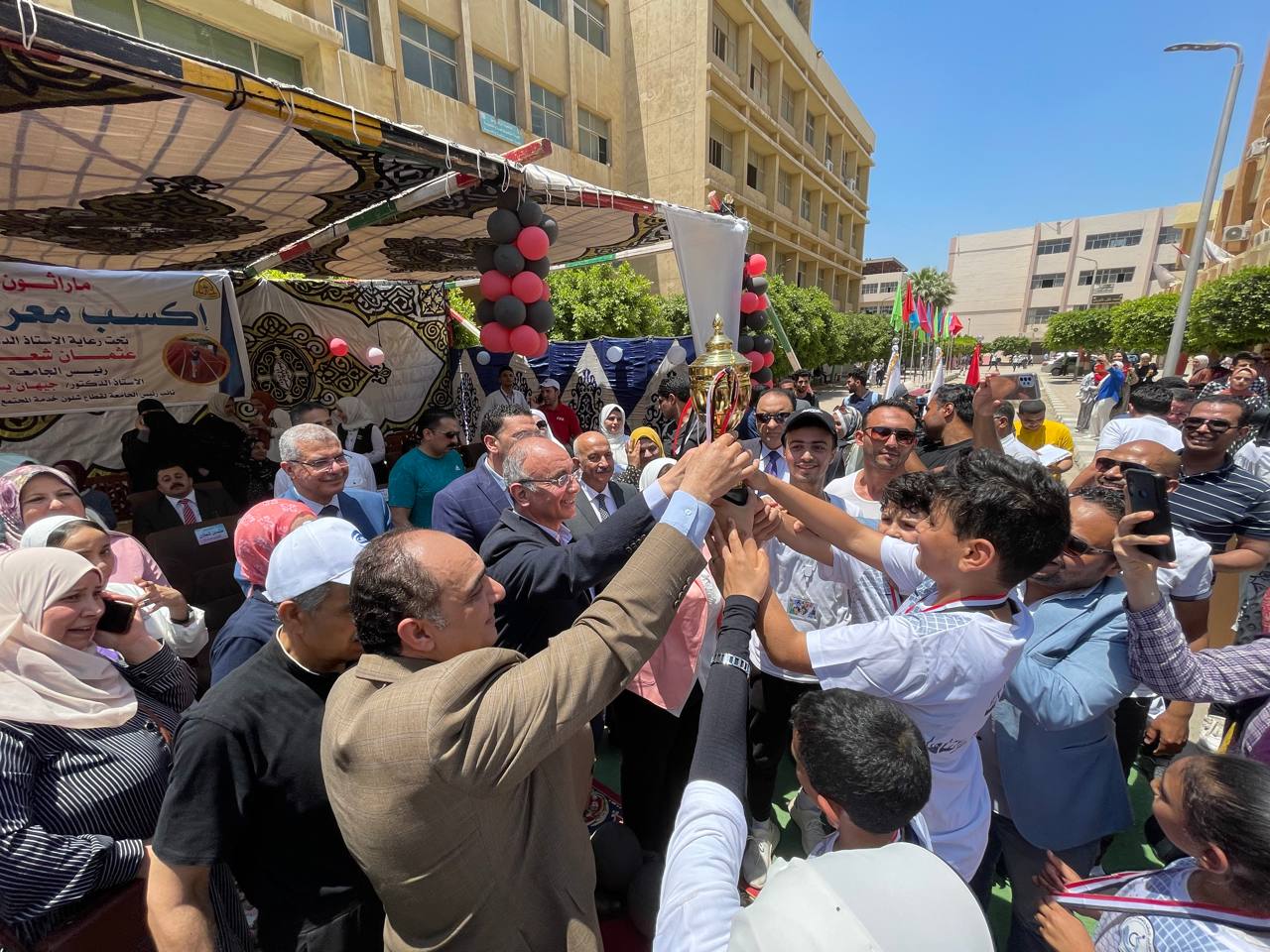 شهد الدكتورعثمان شعلان رئيس جامعة الزقازيق اليوم الثلاثاء فعاليات ماراثون ( اكسب معركتك) والذي يتضمن مسابقات رياضية للأطفال ذوي الهمم المترددين على المعامل المتخصصة.