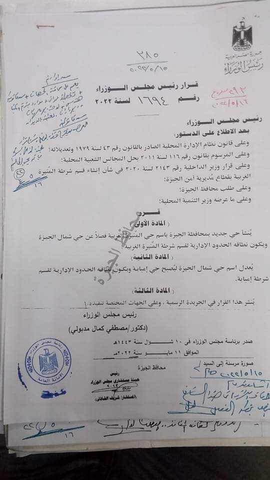 يأتي ذلك وفقًا لقرار الدكتور مصطفى مدبولي رئيس مجلس الوزراء بإنشاء حي جديد بمحافظة الجيزة.