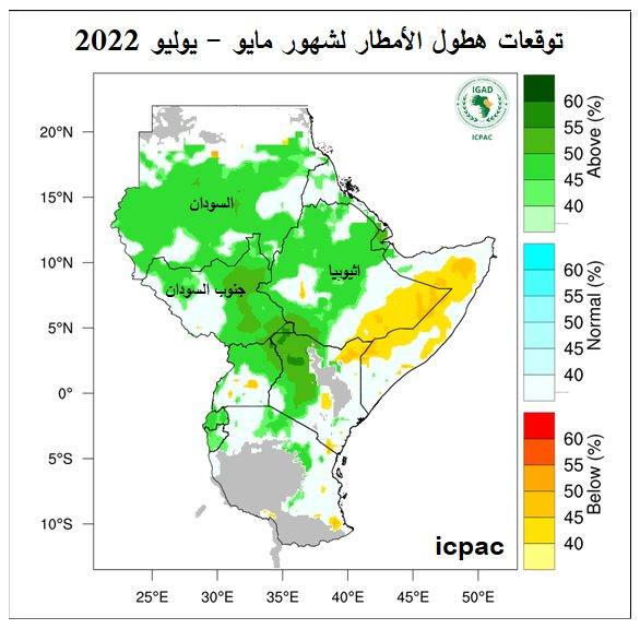 أكد الدكتور عباس شراقي، أستاذ الجيولوجيا والموارد المائية بجامعة القاهرة، أن بيانات الأرصاد الجوية تشير طبقًا لمركز تنبؤ وتطبيقات المناخ (ICPAC) إلى أمطار متوسطة فى مايو الجاري على مناطق حوض النيل الإثيوبية بينما أقل من المتوسط فى باقى أنحاء إثيوبيا.