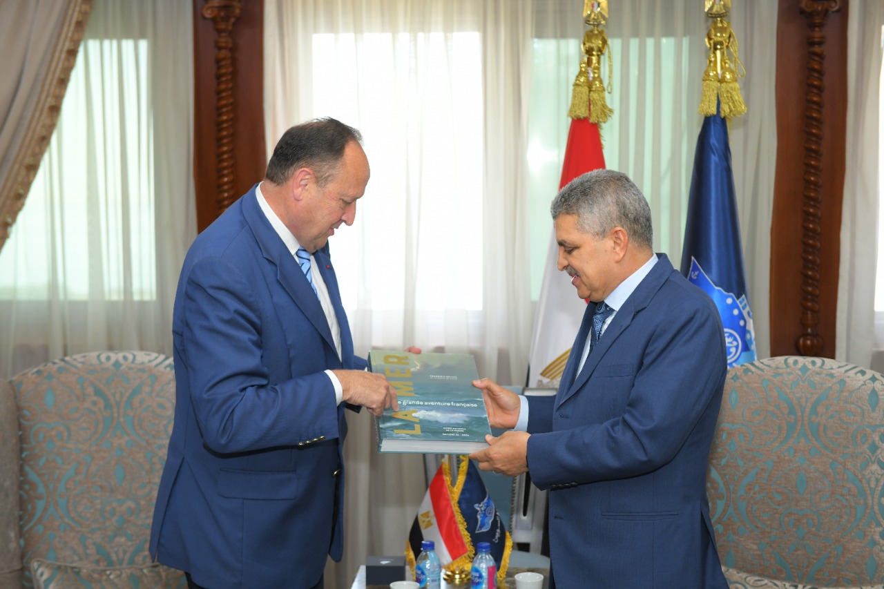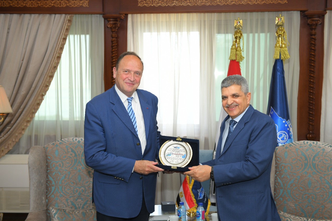 التقى الفريق أسامة ربيع رئيس هيئة قناة السويس، الفريق فانسن كمبرودن المدير العام للمتحف القومي البحري في فرنسا، يرافقه وفد رفيع المستوى يضم كلا من الملحق البحري، والملحق العسكري بسفارة فرنسا في القاهرة، بحضور الدكتور محمد الذهبي استشاري المتحف العالمي لقناة السويس، للاطلاع على مستجدات مشروع المتحف العالمي لقناة السويس، وبحث سبل التعاون المشترك.
