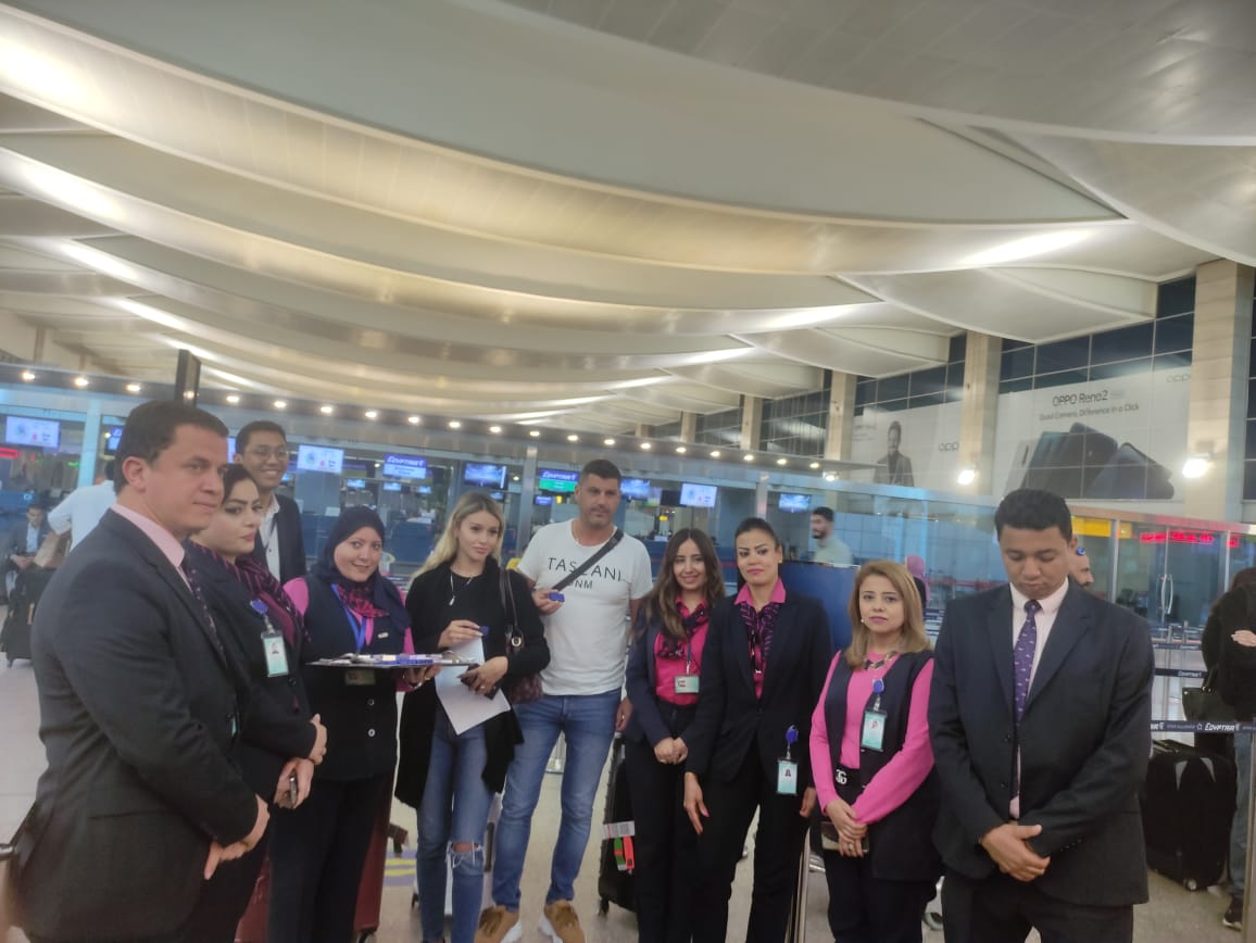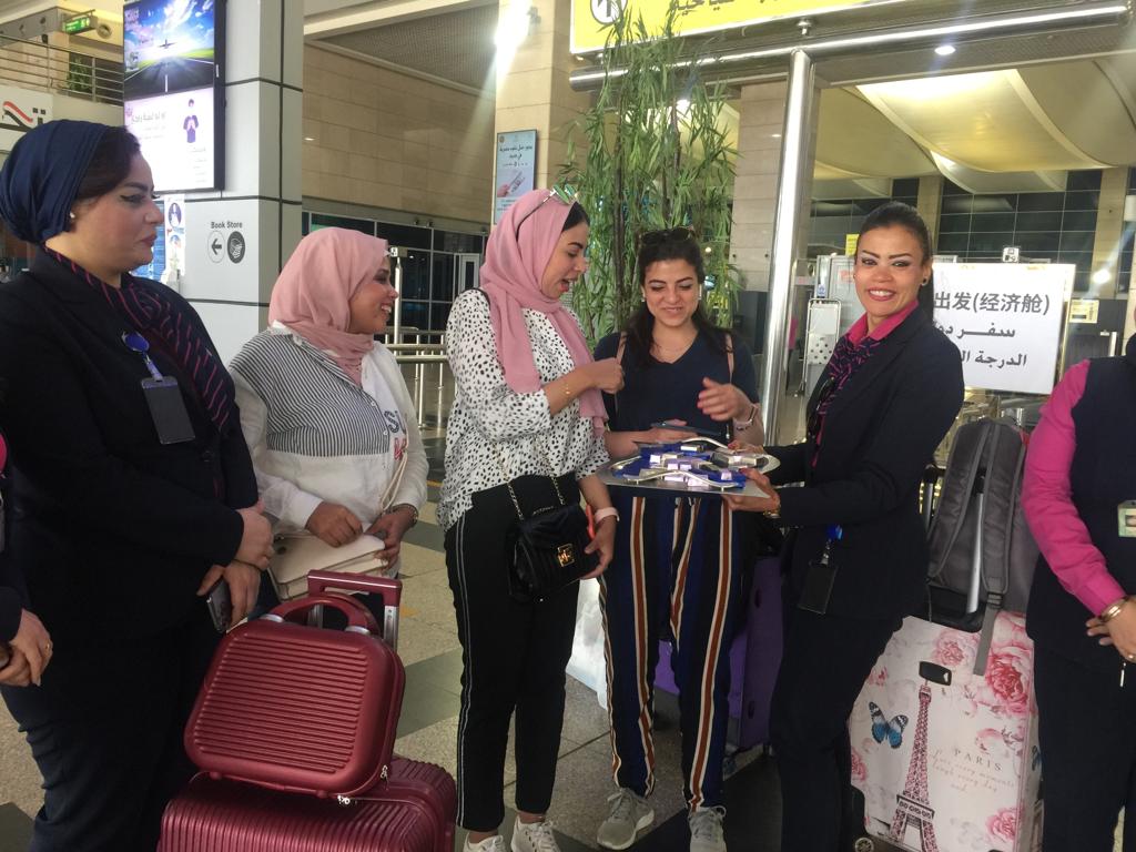 احتفالا بالعيد الـ59.. مطار القاهرة يوزع الحلوى على المسافرين