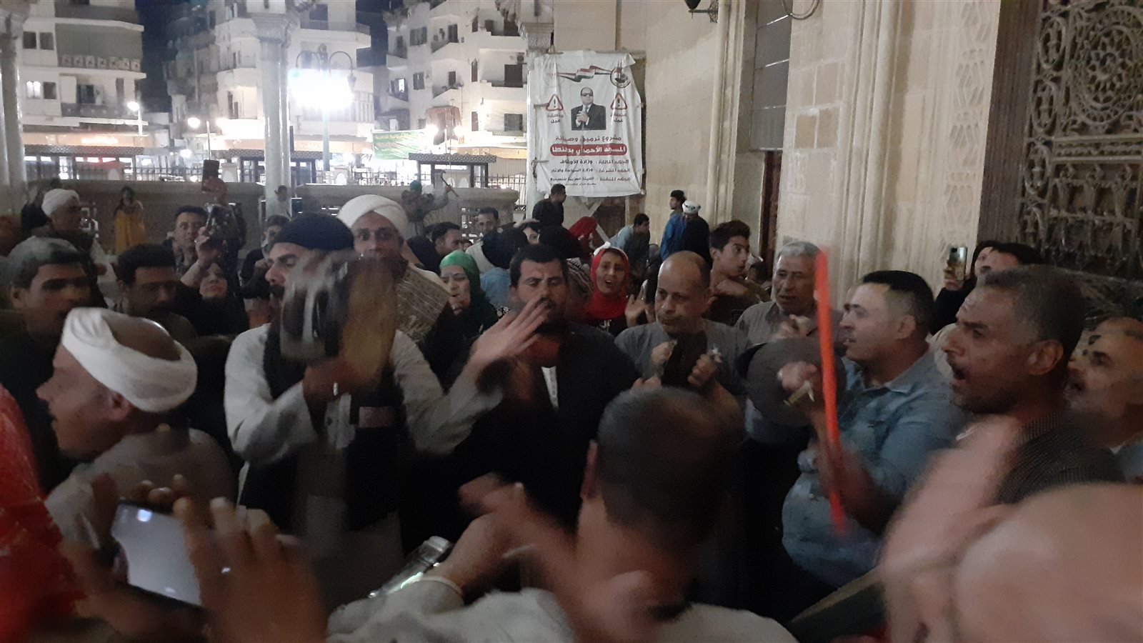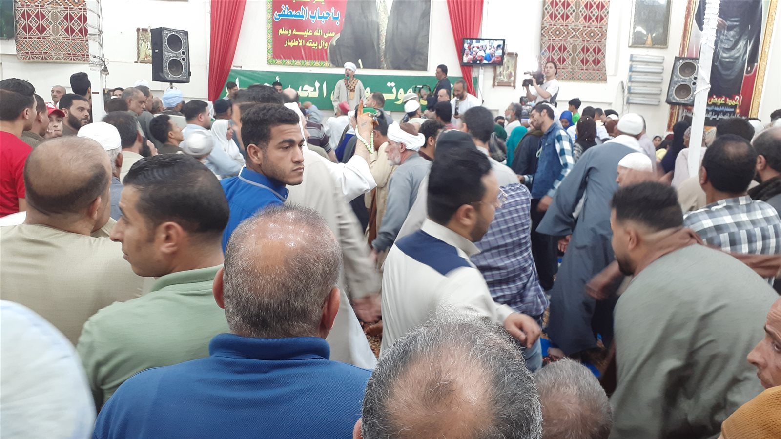 وكانت مكبرات الصوت بالعشرات تعلو كل ساحة يجتمع بها الوافدون إلى ساحة المسجد، الذي يُعد من أكبرالمساجد.