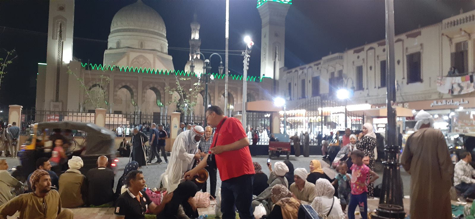 توافد المئات وافترشوا ساحات مسجد السيد البدوى بمدينة طنطا في الغربية عقب الإفطار مباشرة لحجز مكان لهم للإستمتاع بتلك الليلة كما هي العادة.