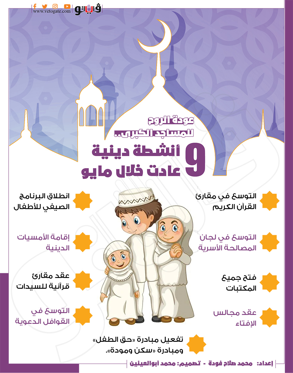 عودة الروح للمساجد الكبرى..9 أنشطة دينية عادت خلال مايو | انفوجراف الجمعة 20/مايو/2022 - 05:30 م 5/20/2022 5:30:19 PM عودة الأنشطة الدينية محمد صلاح فودة شارك طباعة 18 حجم الخط شارك طباعة المساجد الكبرى القوافل الدعوية الأمسيات الدينية القرآن الكريم مبادرة سكن ومودة