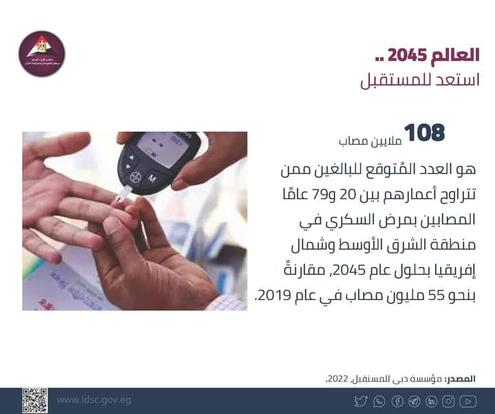 توقعات بوصول عدد المصابين بمرض السكري إلى 108 ملايين في 2045| إنفوجراف