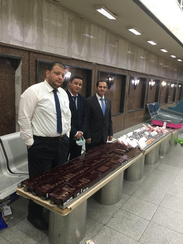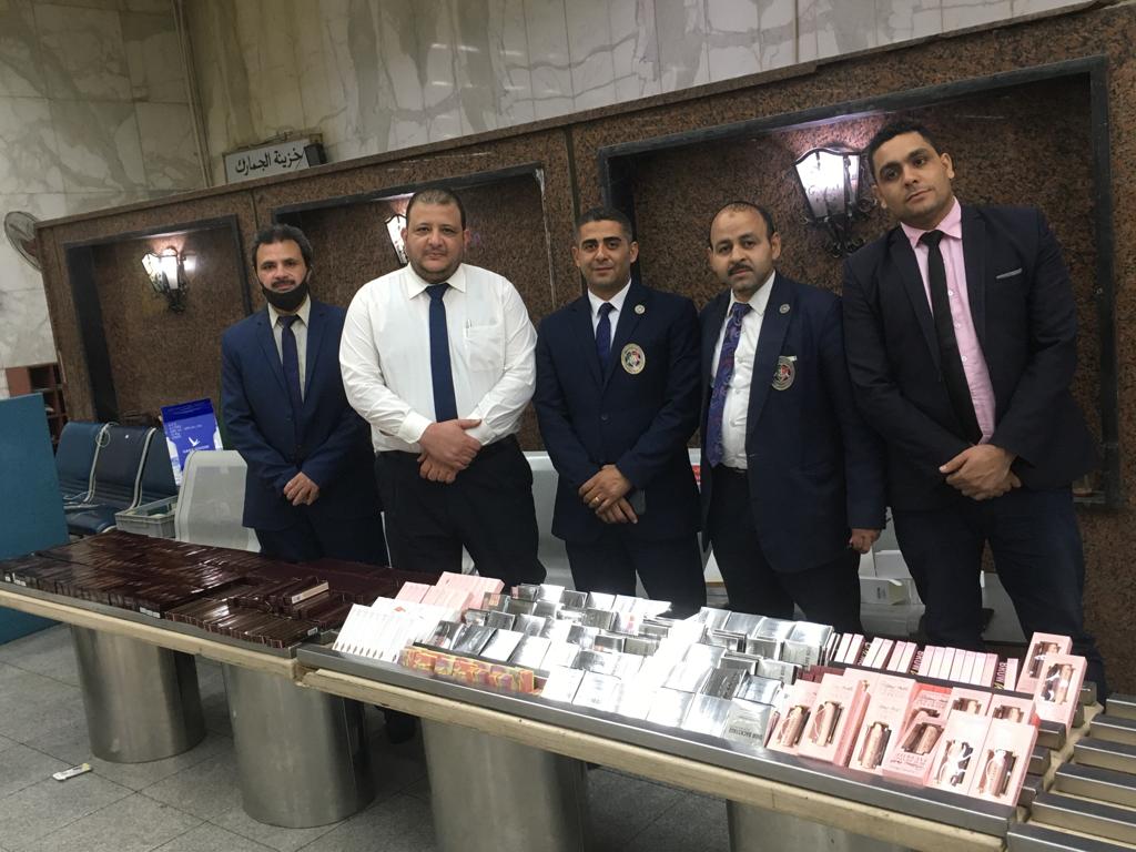 وأضافت المصادر انه بتمرير حقائب الراكب على جهاز الفحص بأشعة «X-RAY» بمعرفة على الطاهر مأمور الفحص، وهاني مصطفى رئيس القسم، فأفادا بوجود كثافات على شكل علب متشابهة، وكلف محمد حميدة مدير الجمرك، عمرو شعبان مدير الحركة، ومجدي عزت مأمور الجمرك، بتفتيش أمتعة الراكب، وتكليف محمد الديب ومحمد زايد مأموري الجمرك، لتفتيش الراكب ذاتيا تحت إشراف سامي سليمان مدير الحركة، فتبين وجود 500 عبوة من أدوات ومستحضرات التجميل المتنوعة مخبأة بين طيات الملابس داخل الحقائب، وتقدر قيمة المضبوطات بحوالى مليون جنيه.