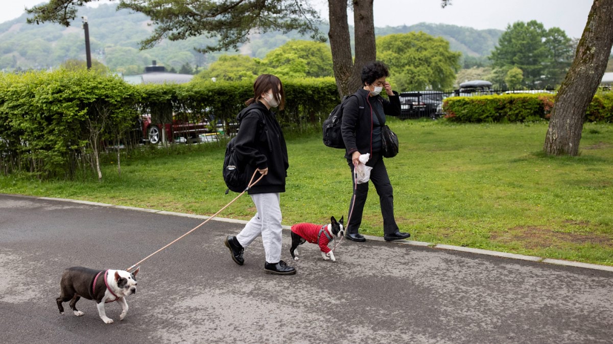 وقالت يوكاري سينو (48 عامًا): ”نحن نمرح“، مداعبة كلبها البالغ سبعة أشهر من نوع شيواوا، والمدعو تشوبي، خلال استرخائه في حضنها.