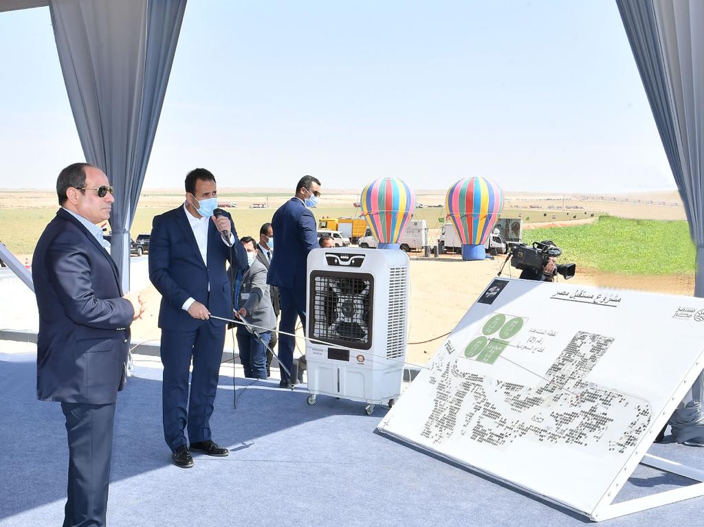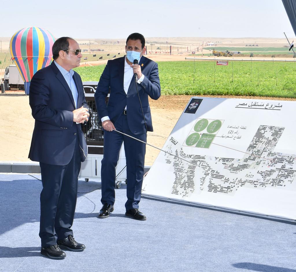 كما تم استعراض مراحل تطور مشروع مستقبل مصر وخططه وأهدافه حيث أن إجمالي المساحة المخصصة للمشروع يبلغ مليونا و50 ألف فدان وهي تمثل 50 % من مشروع الدلتا الجديدة