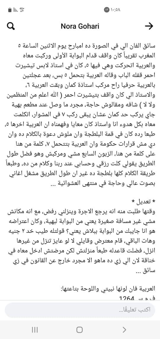وأكد جهاز السرفيس بالجيزة، أنه تم التحفظ علي السيارة واتخاذ الإجراءات القانونية حيال المخالف تحت إشراف محمود حسين رئيس جهاز السرفيس بالجيزة، ومحمد العناني نائب رئيس الجهاز، ووليد حمودة رئيس قطاع الهرم ومباحث المرور بالجيزة.