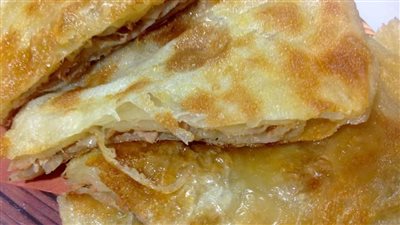 نحضر ورقة الجلاش ونكرمشها ونضعها فى الصينية ونقوم بعمل وحده وحده حتى تنتهي كمية الجلاش وونرصهم بجوار بعضهم في الصينية