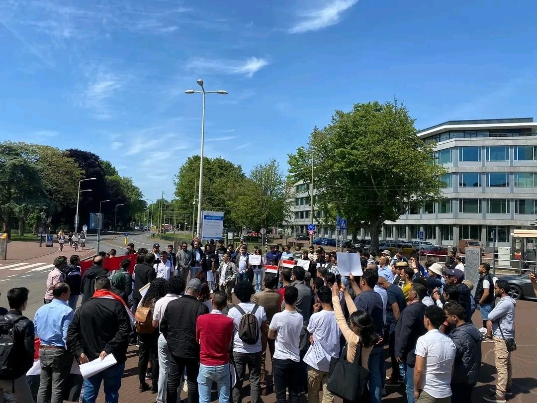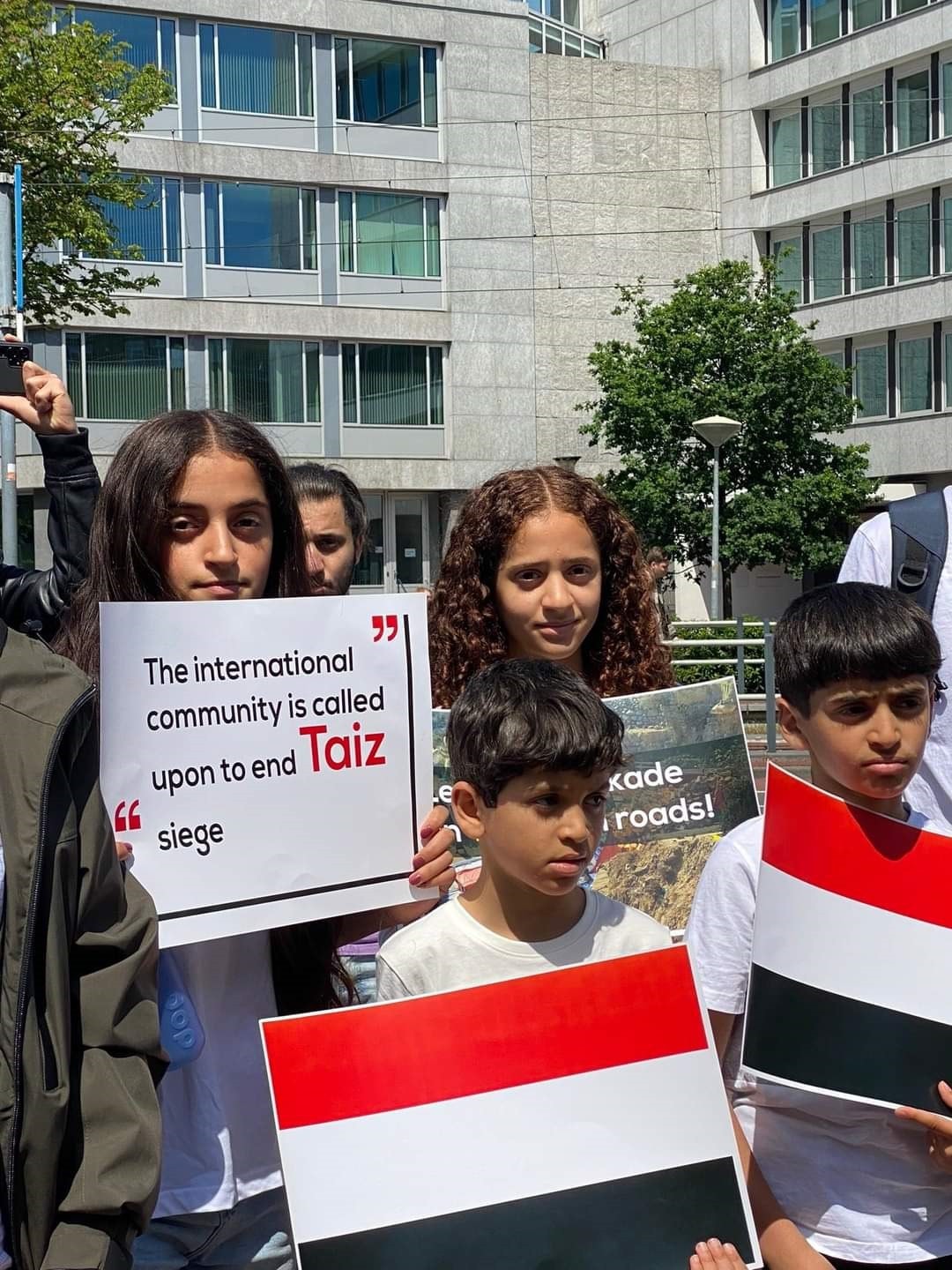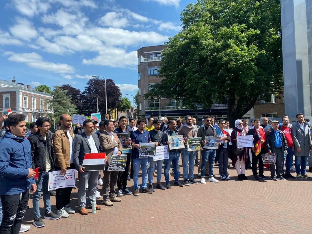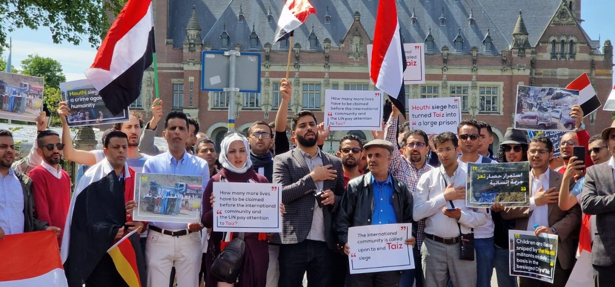 دشن عشرات النشطاء اليمنيين وقفة احتجاجية امام محكمة العدل الدولية في مدينة لاهاي في هولندا مطالبين بفض الحصار الحوثي عن مدينة تعز اليمنية المنكوبة.
