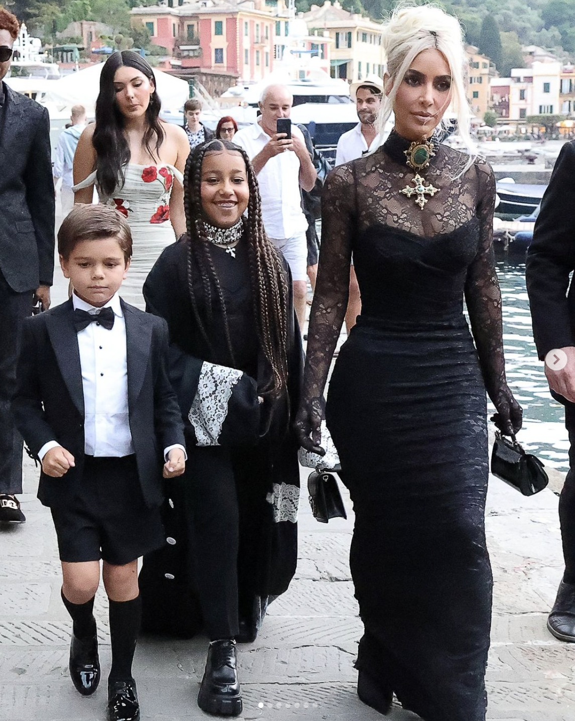 وتوجهت كورتني كارداشيان إلى إيطاليا برفقة أولادها وترافس باركر وأولاده، منذ عدة أيام للاحتفال بزفافهم في قلعة على البحر تم حجزها بأكمالها للعروسين والمدعوين فقط.