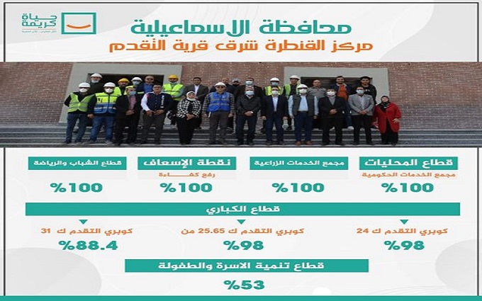- في إطار المبادرة الرئاسية حياة كريمة، تم تطوير العديد من القطاعات في محافظة الإسماعيلية وبالتحديد في مركز القنطرة شرق قرية التقدم.