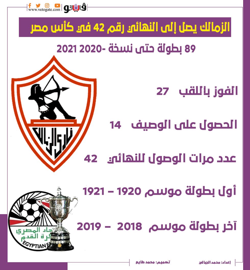 الزمالك يصل إلى النهائي رقم 42 في كأس مصر | إنفوجراف الإثنين 23/مايو/2022 - 11:19 م 5/23/2022 11:19:20 PM مباراة الزمالك وأسوان إعداد محمد الجبالي شارك طباعة 18 حجم الخط شارك طباعة كأس مصر الزمالك أسوان انفوجراف بطولة